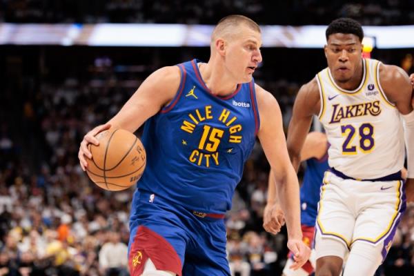 4月26日讯 NBA季后赛首轮G3,掘金半场49-53湖人。
